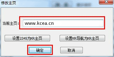 然后在打开的对话窗口中的主页栏的地址输入框中输入“http://www.kcea.cn/”,然后点击窗口下方的“确定”按扭即可,如下图所示: